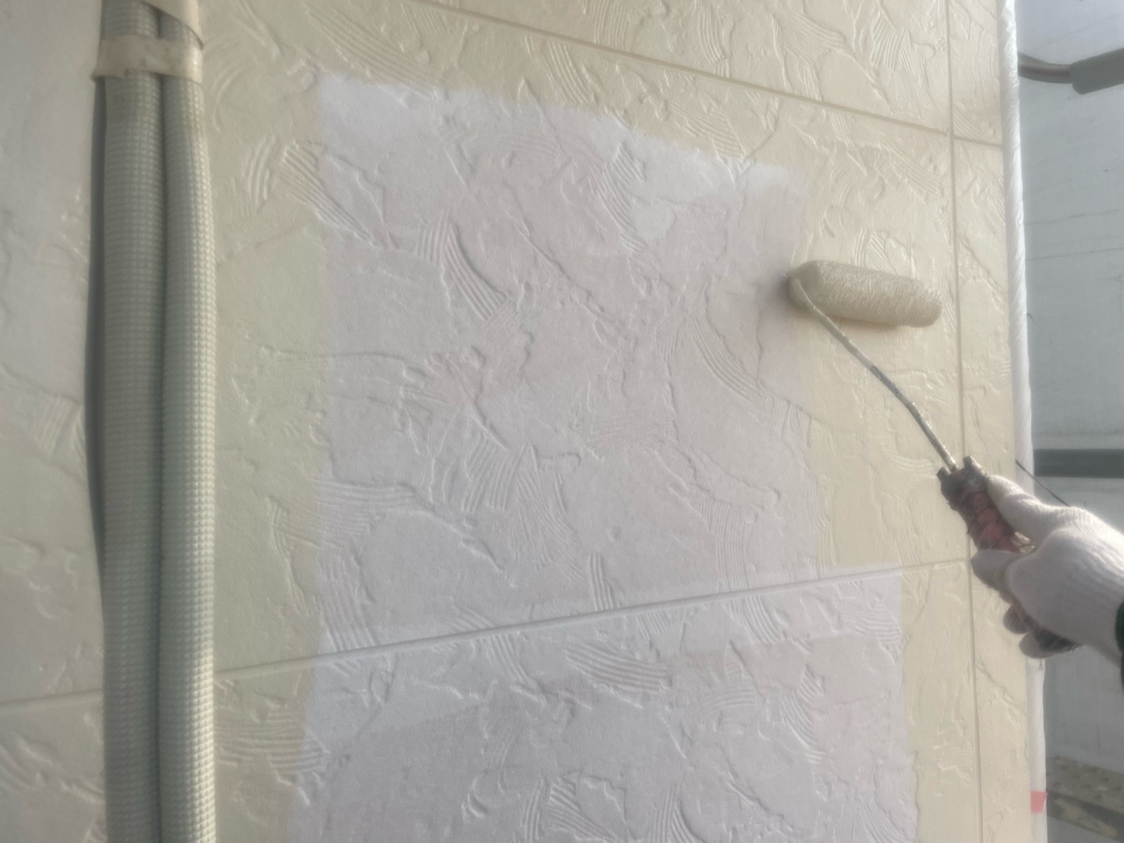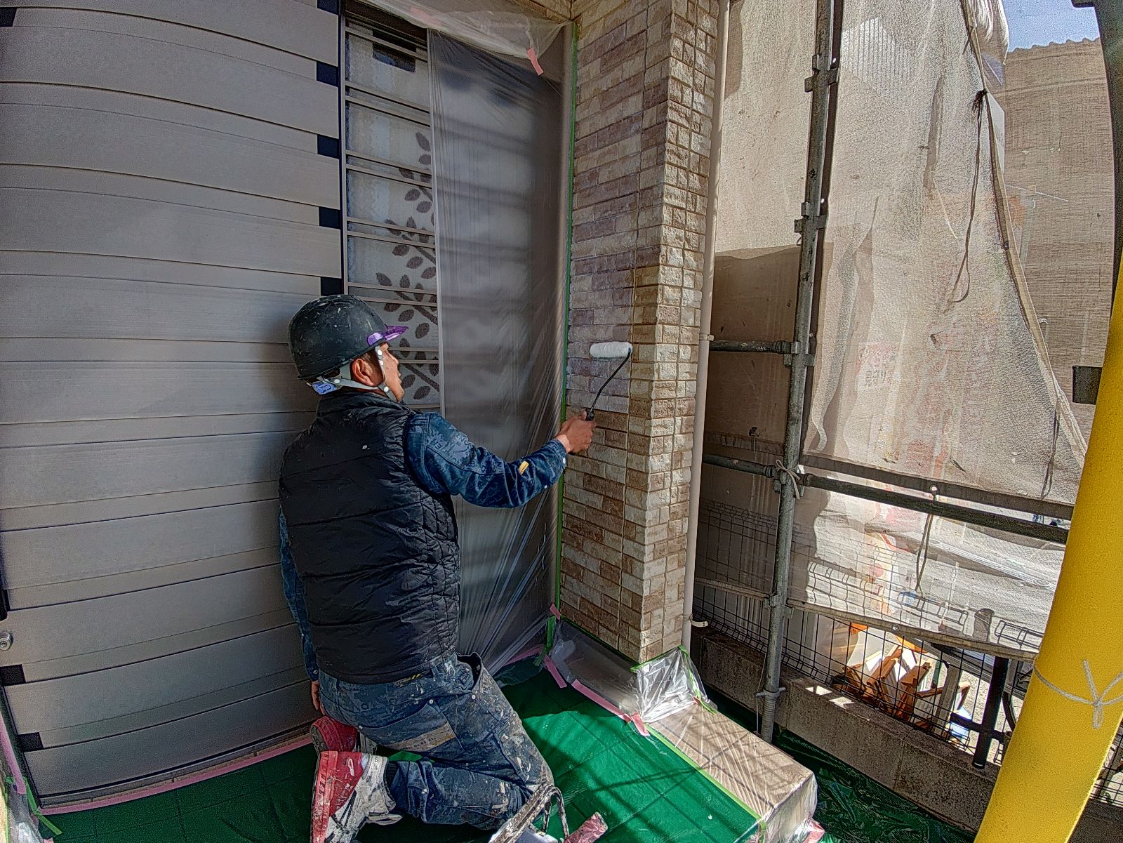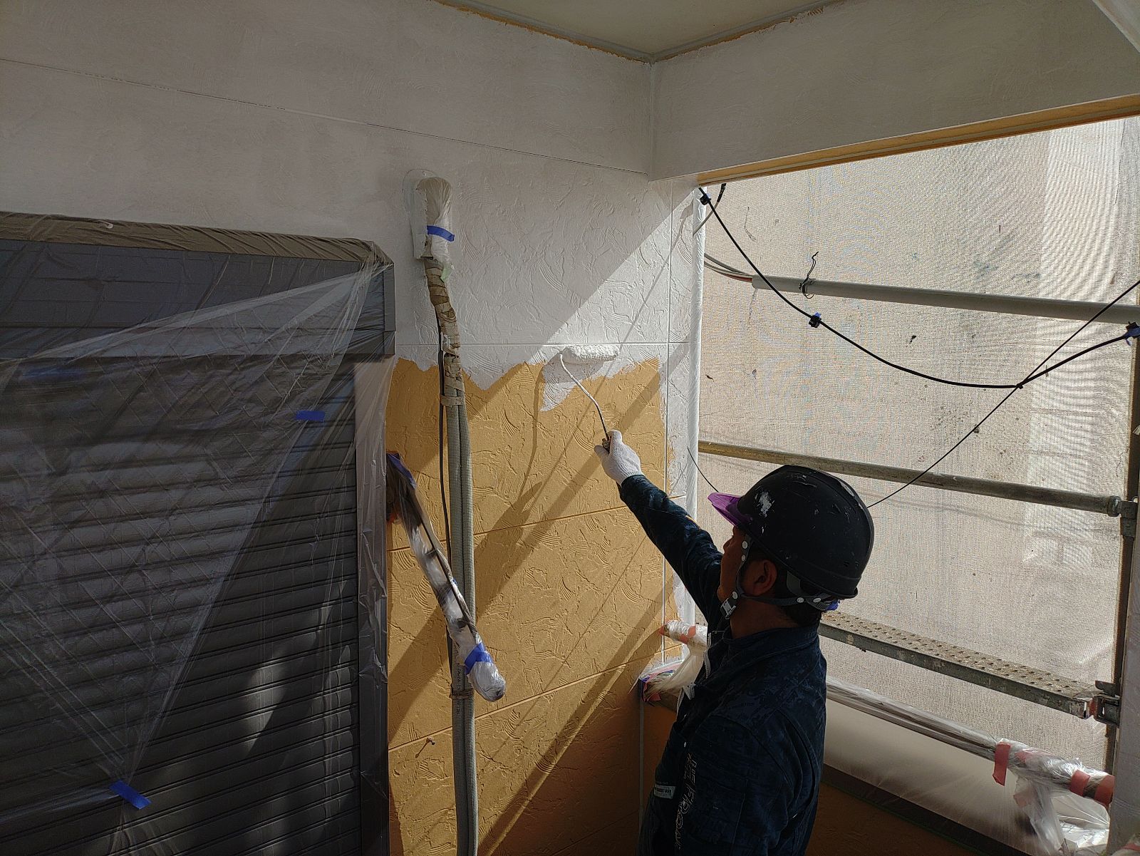 【施工中】外壁-下塗り:下塗りから、微生物汚染に対する抵抗性を発揮するSDサーフエポプレミアムを使用!