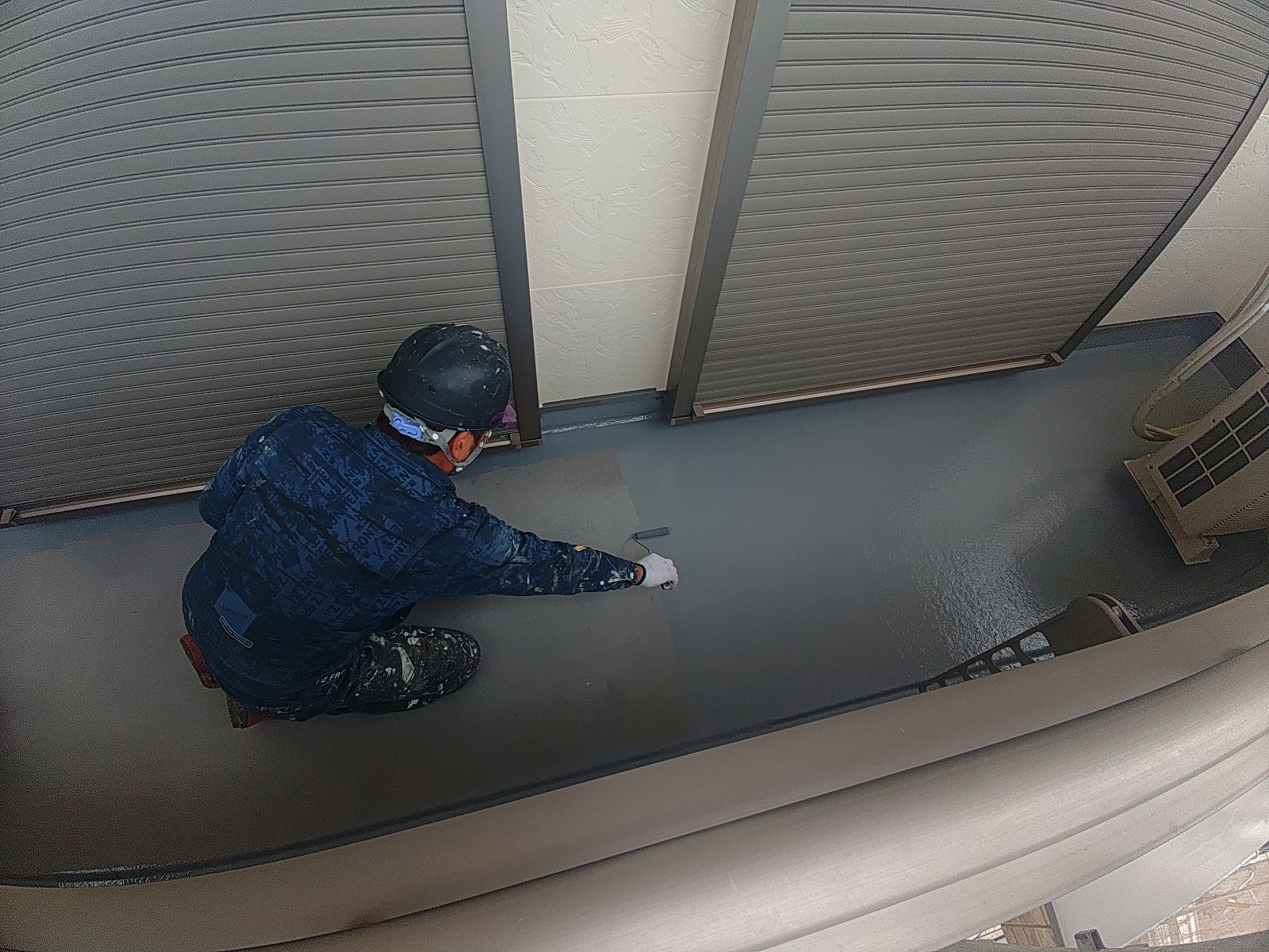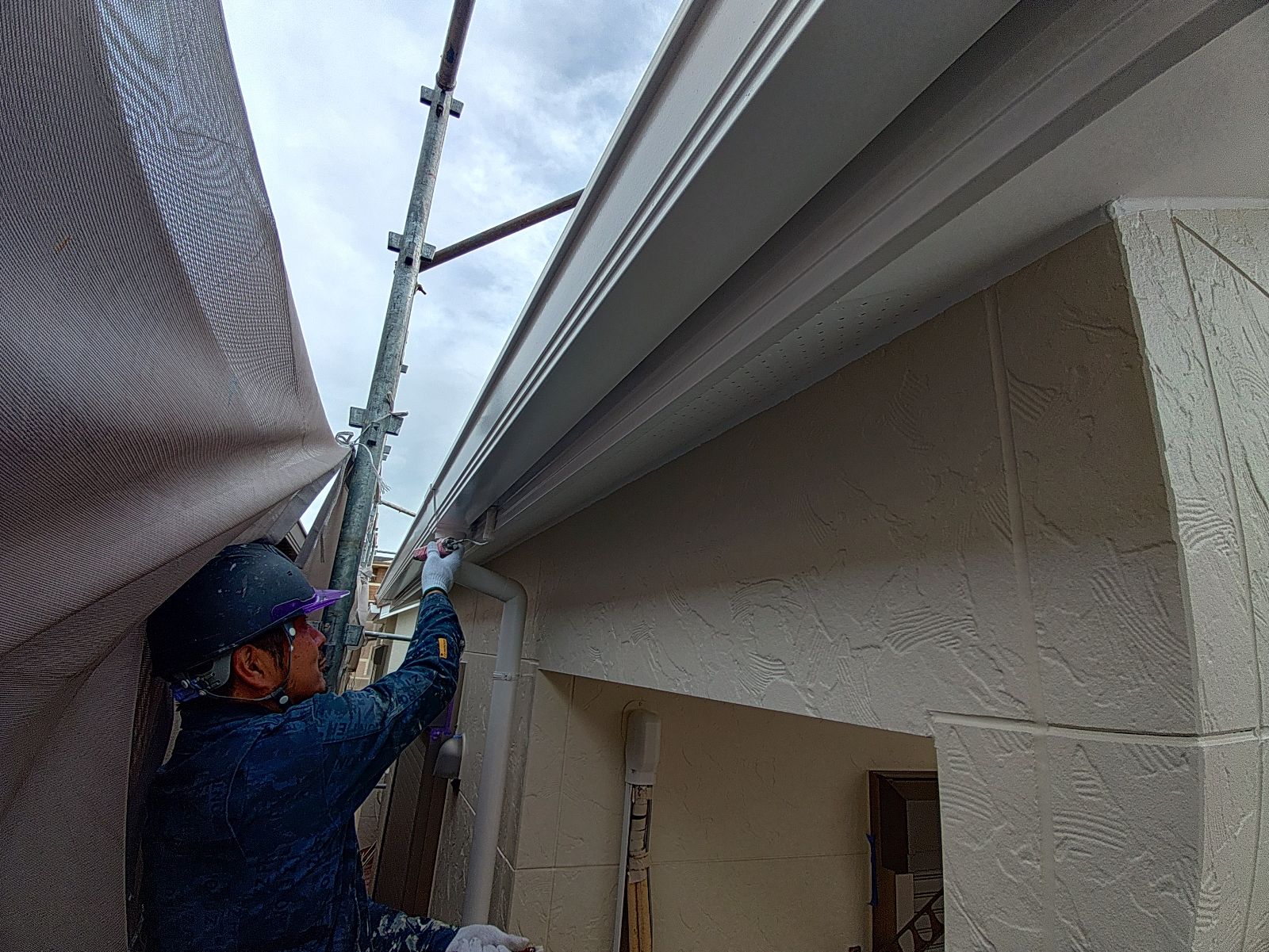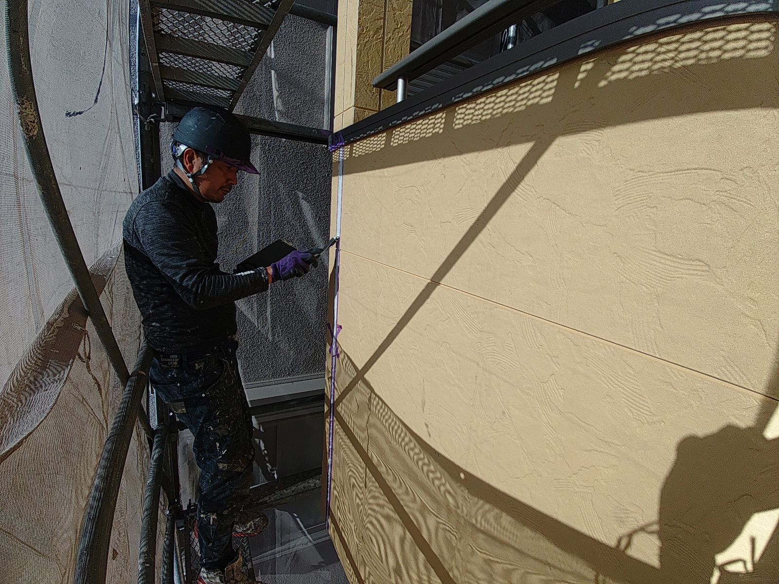 【施工中】外壁-下塗り:下塗りから、微生物汚染に対する抵抗性を発揮するSDサーフエポプレミアムを使用!