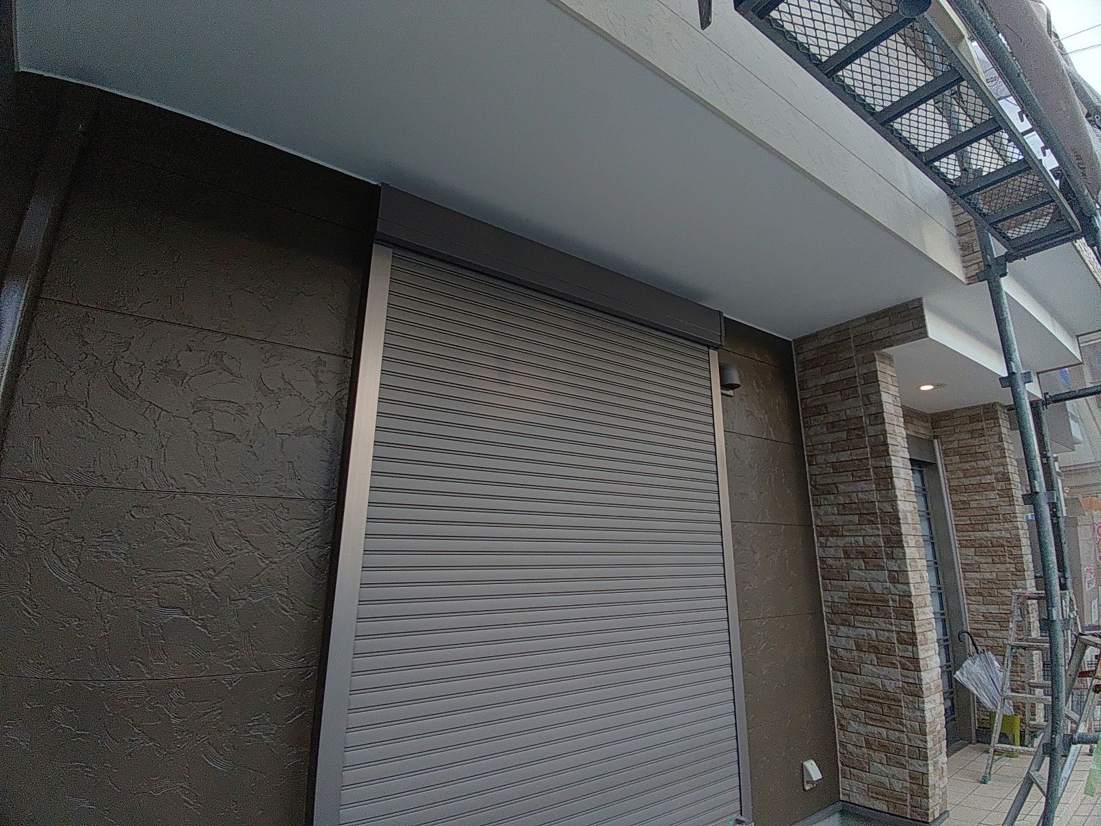 【施工中】外壁-上塗り:1Fは水谷ペイント標準色SS-23。他メーカーのカタログからでも色は作れます。