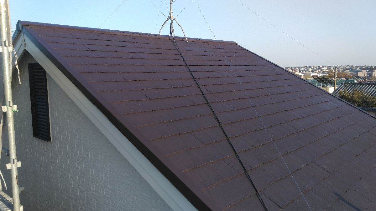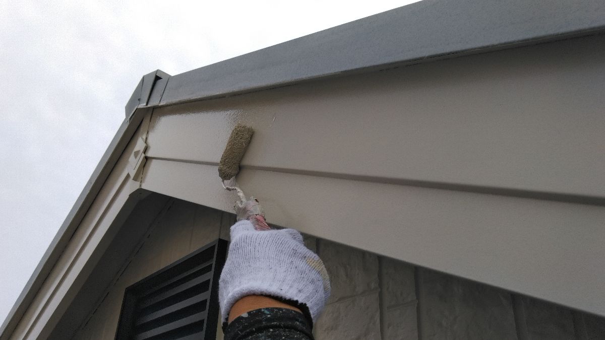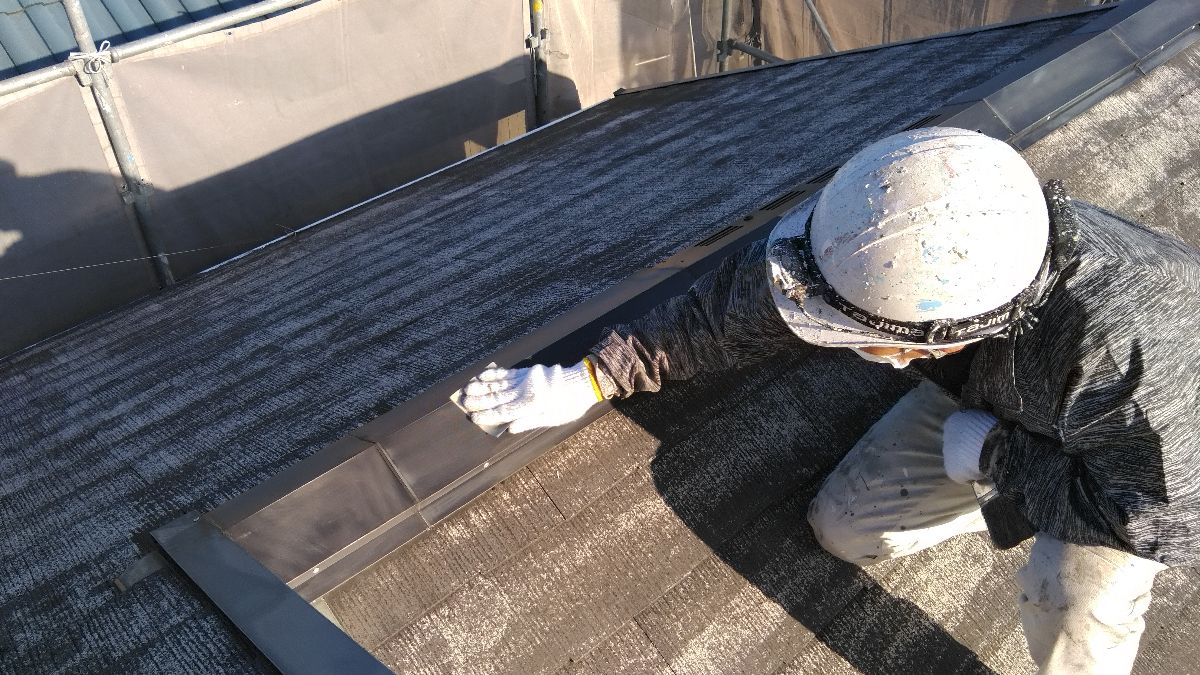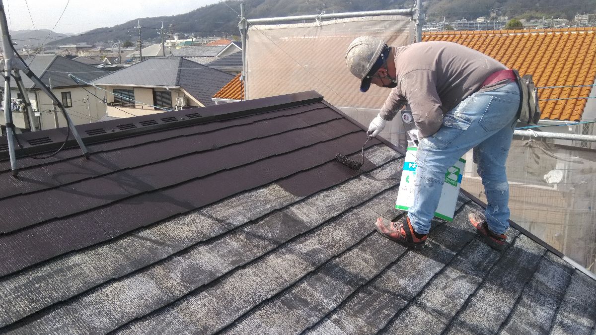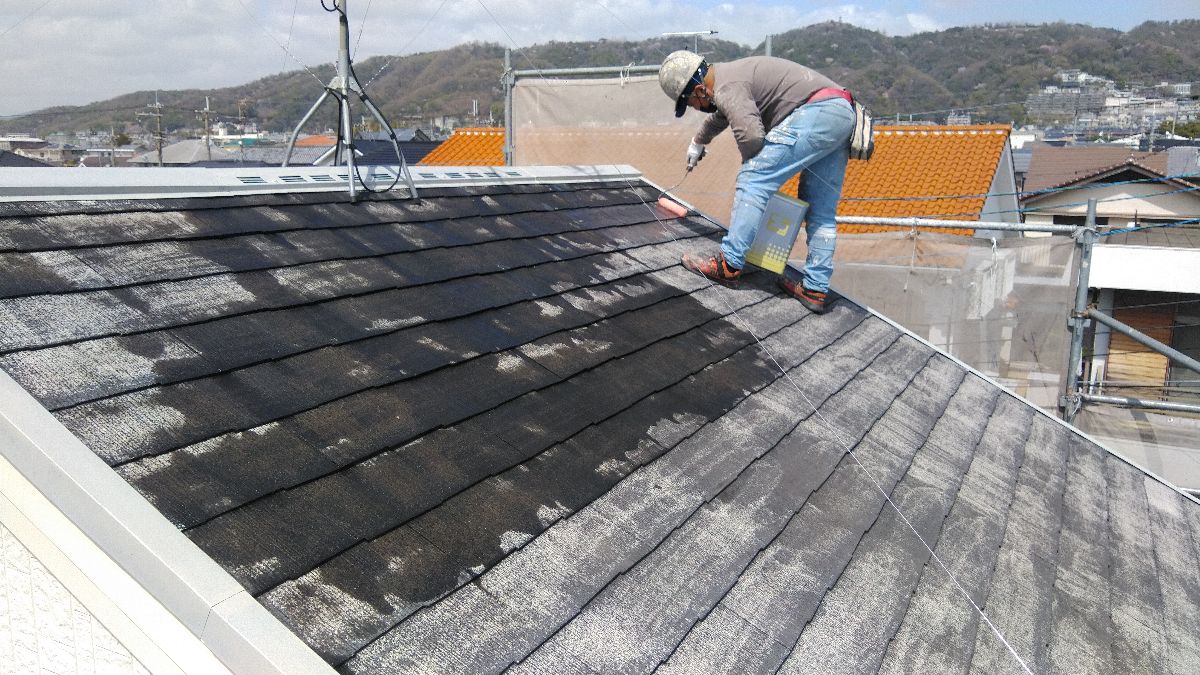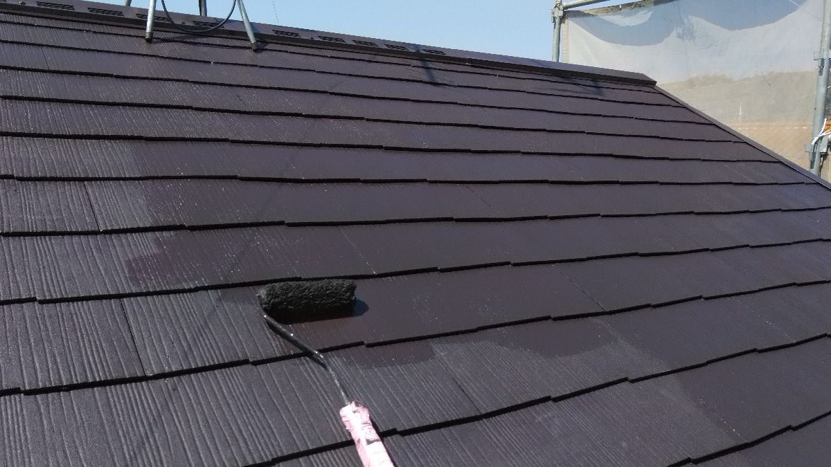 【施工中】屋根-下塗り:とても暑い日だったので、塗ったそばから乾燥していきます。