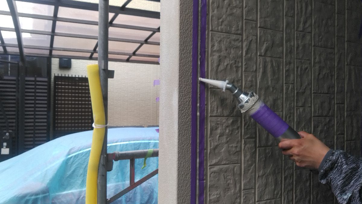 【施工前】外壁アップ:チョーキングと目地の劣化が気になりました。